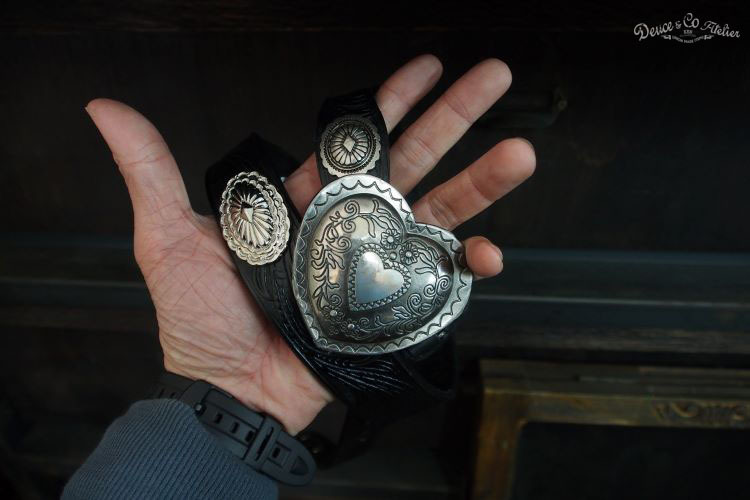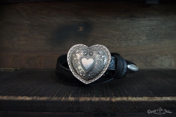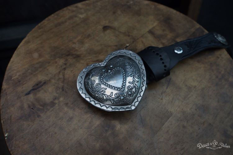 採用愛心雕花帶扣,讓單品更有粗曠老味,