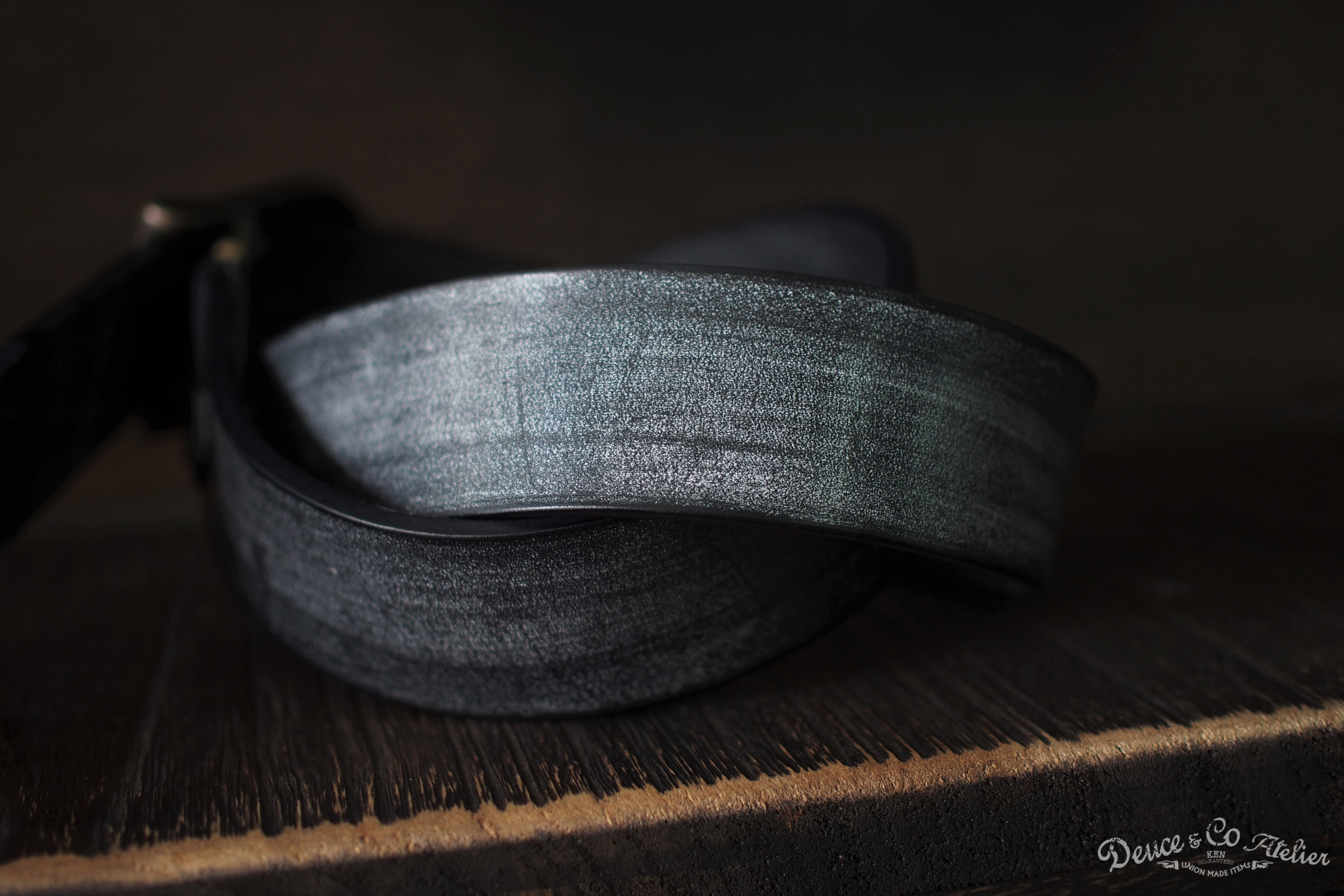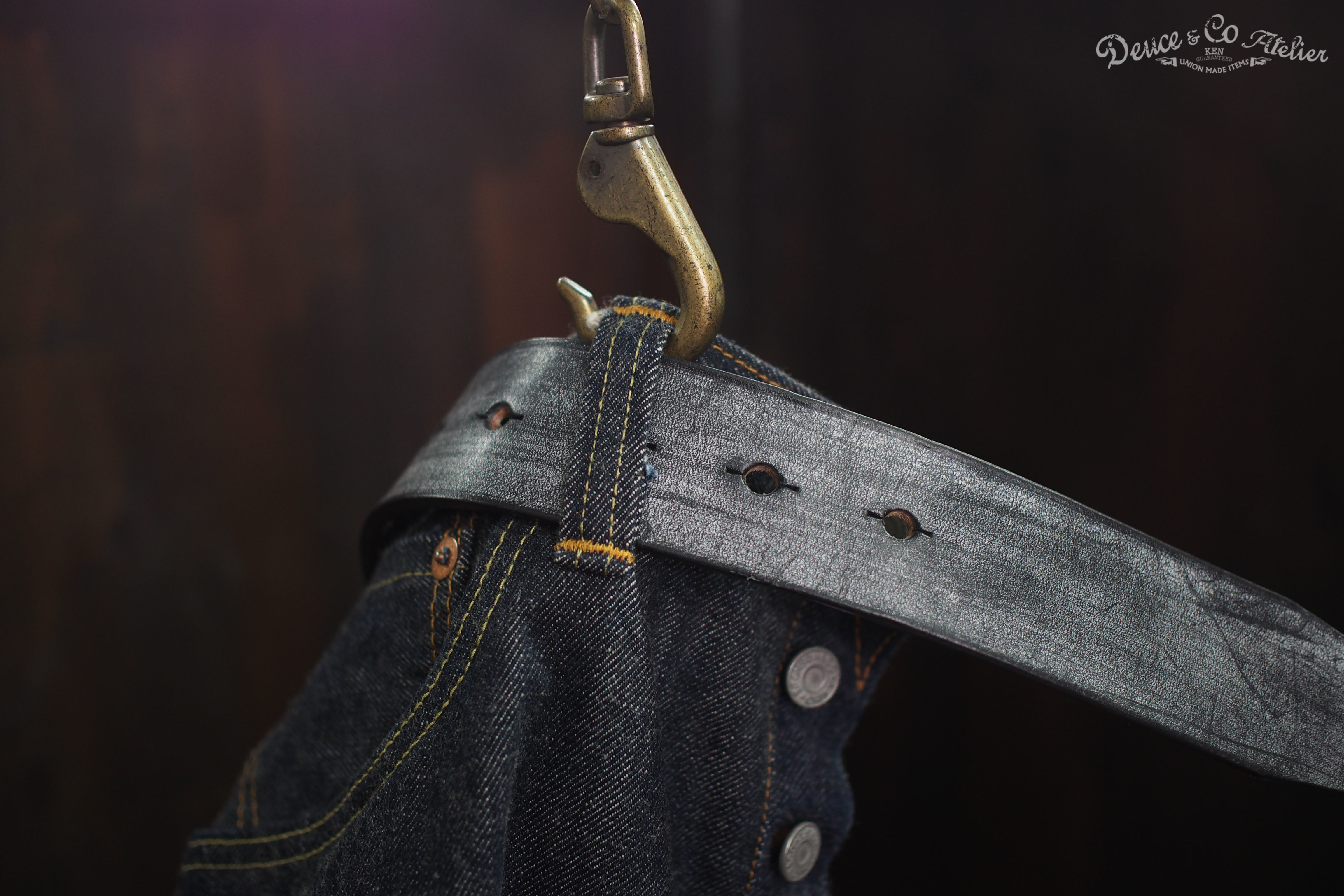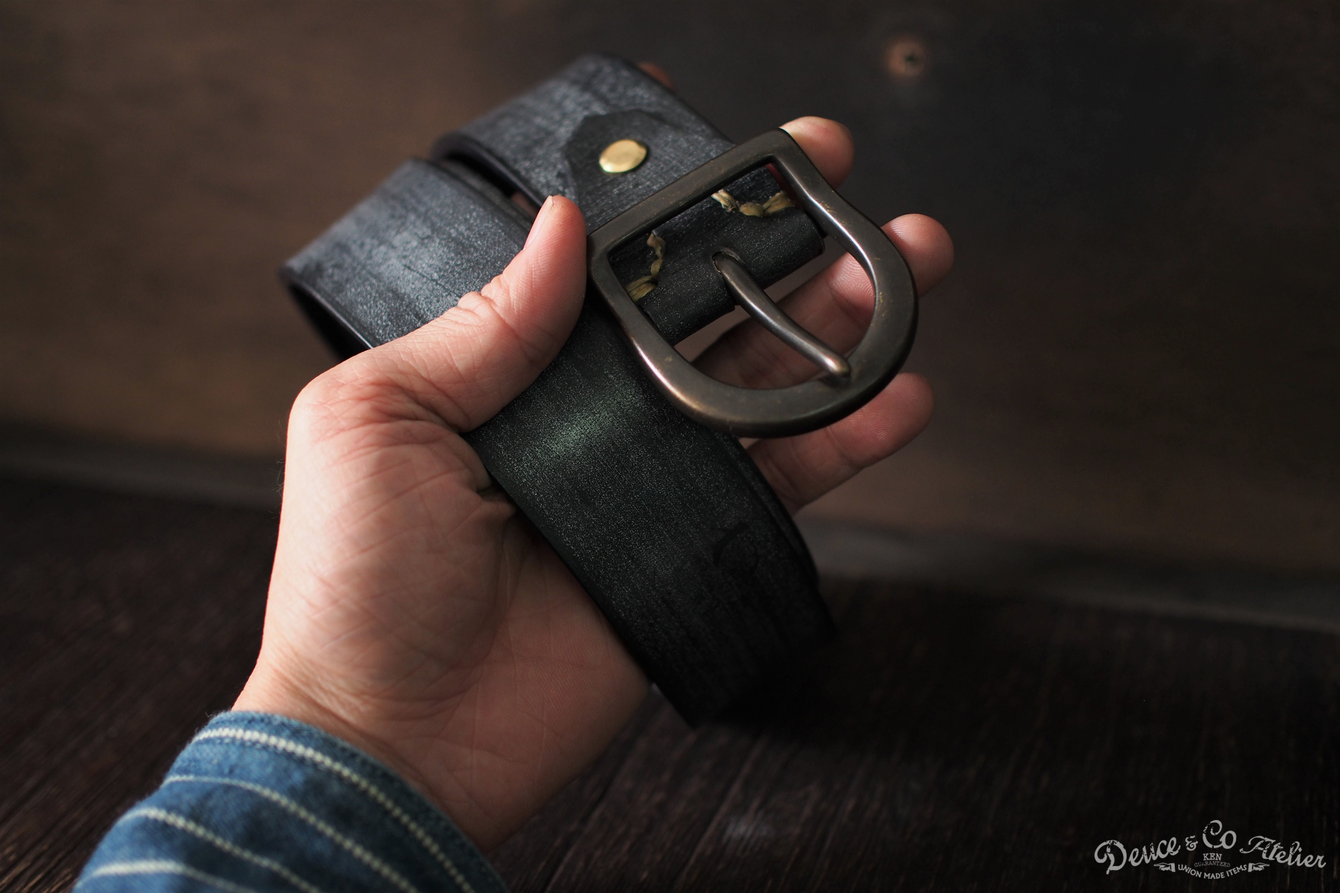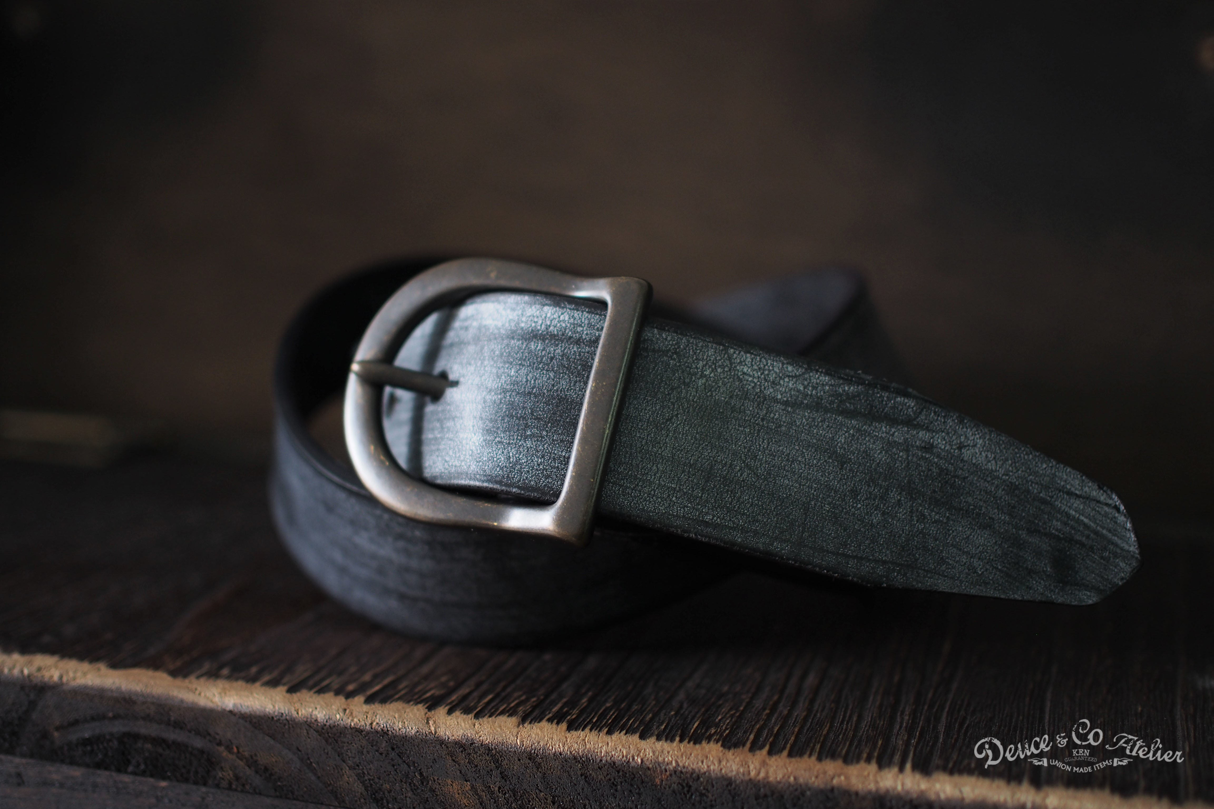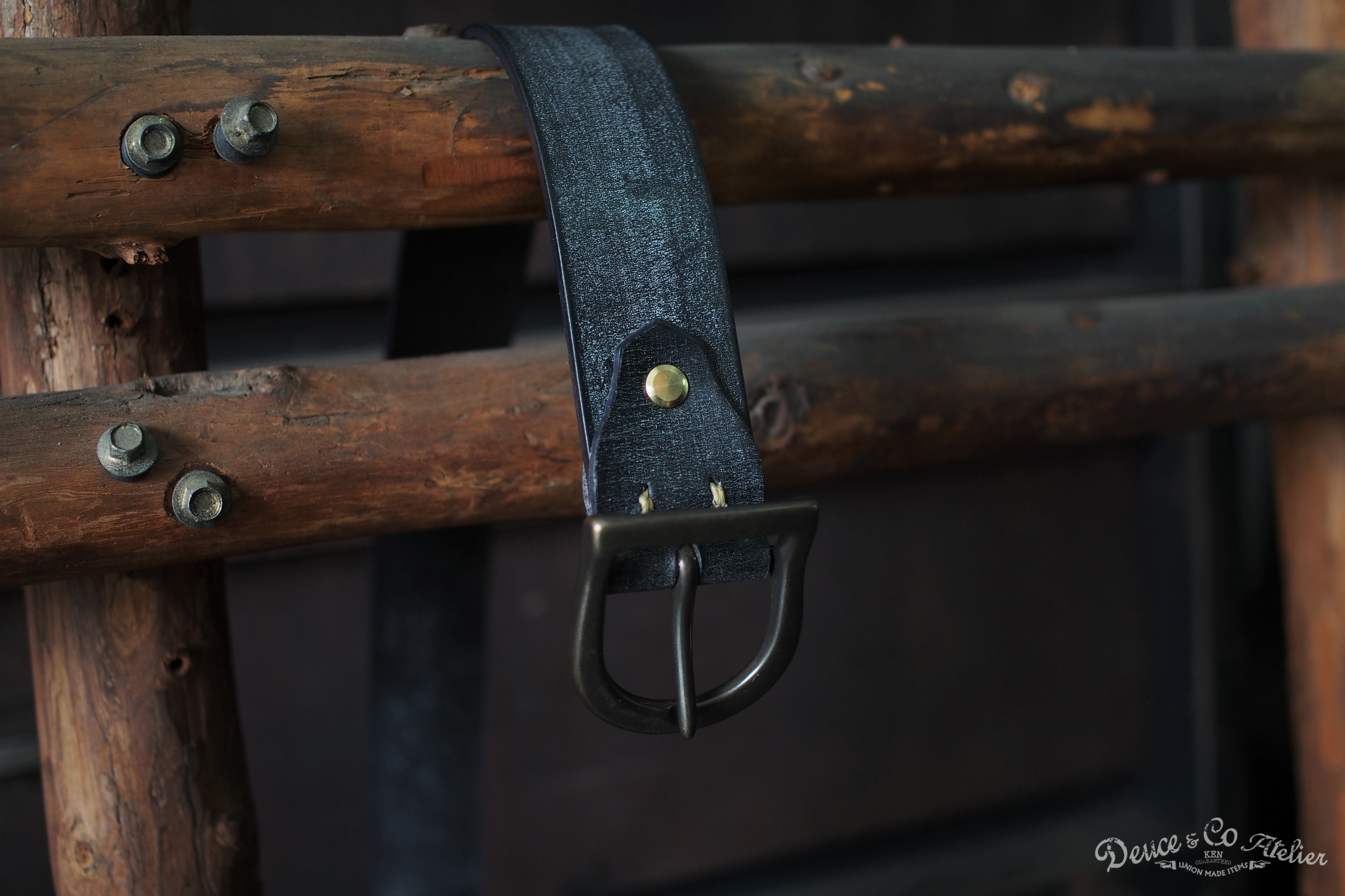 粗曠的3.8cm 皮帶寬度, 黑色重蠟革皮身搭配古銅馬具帶釦,