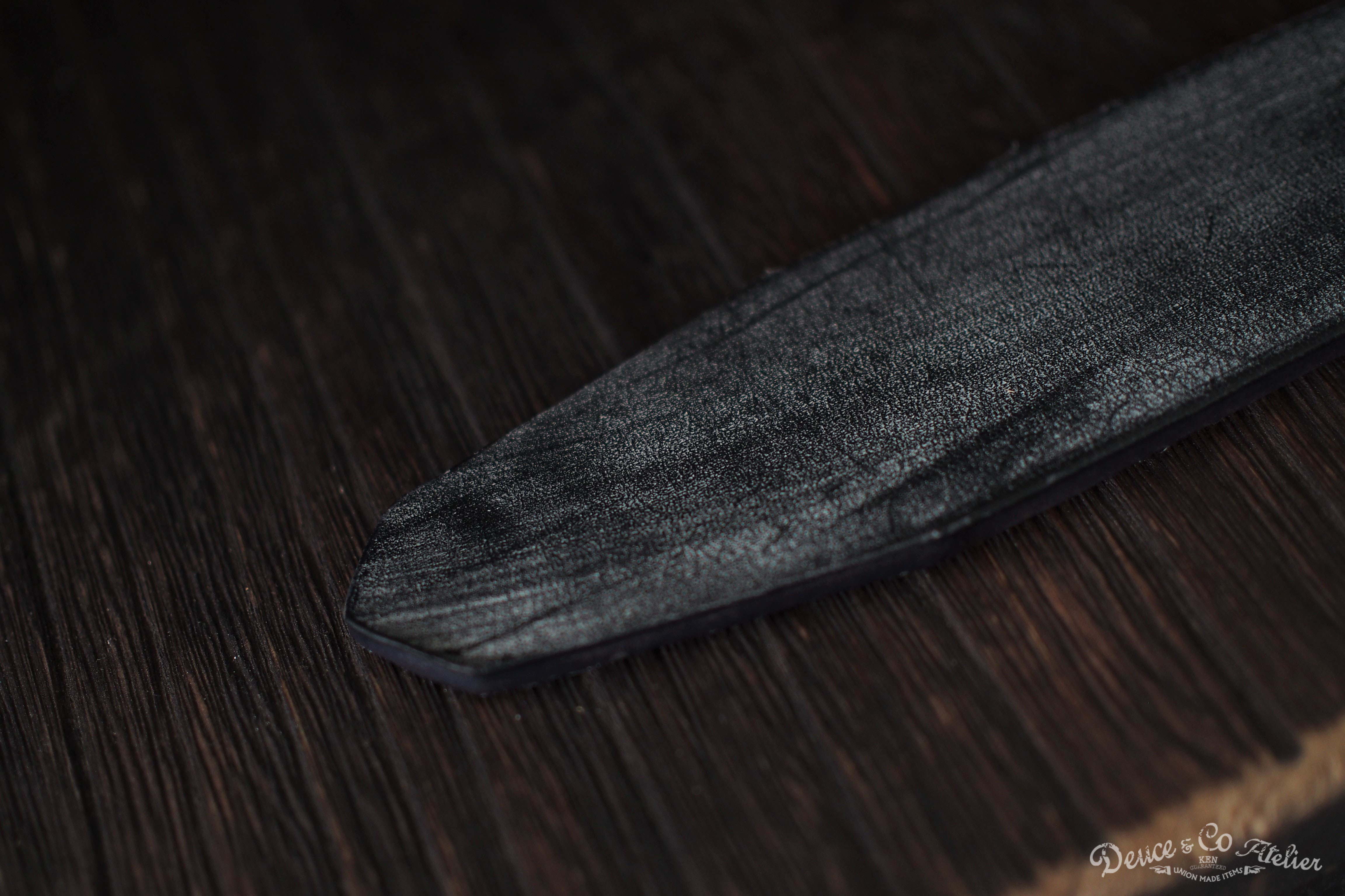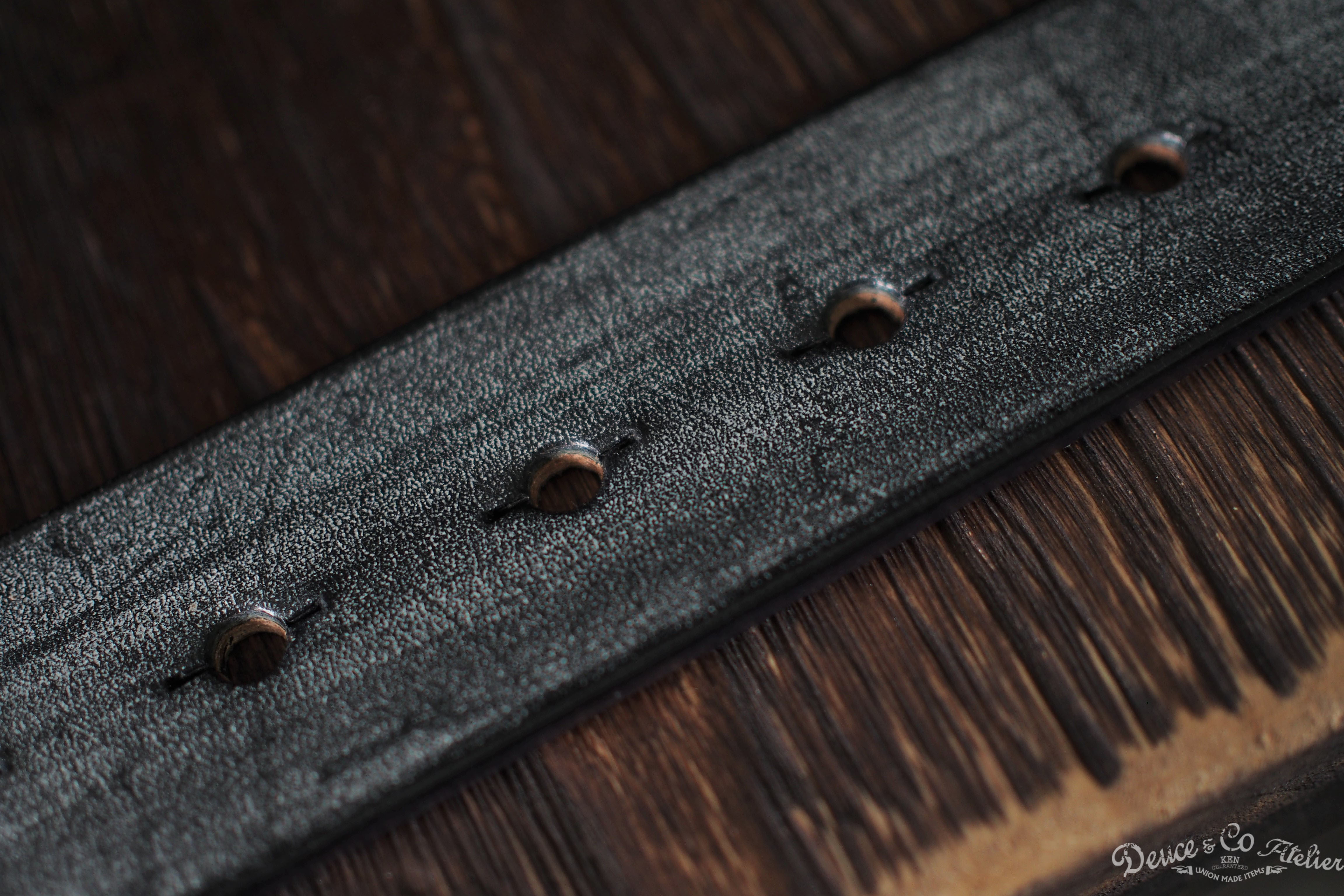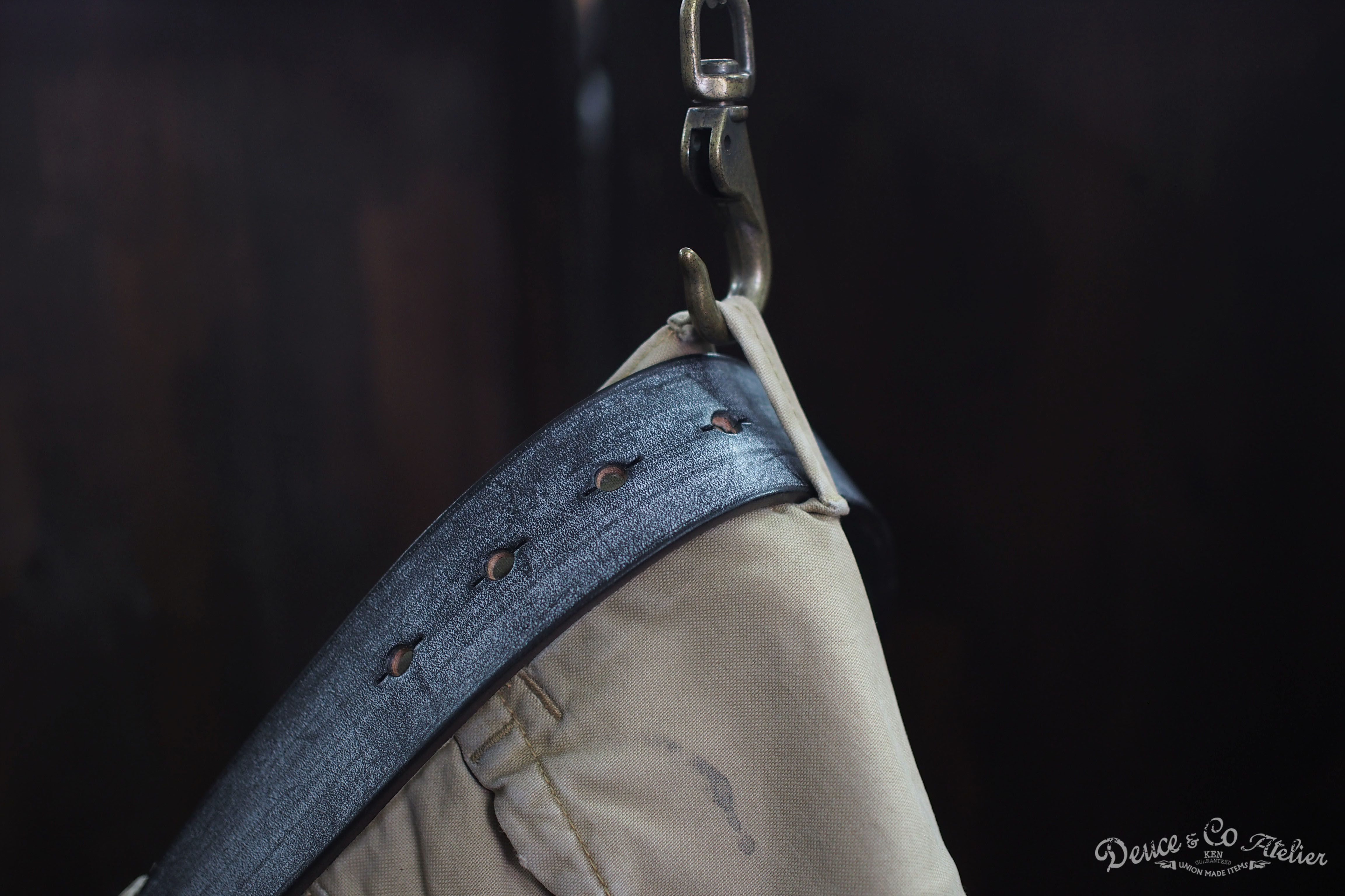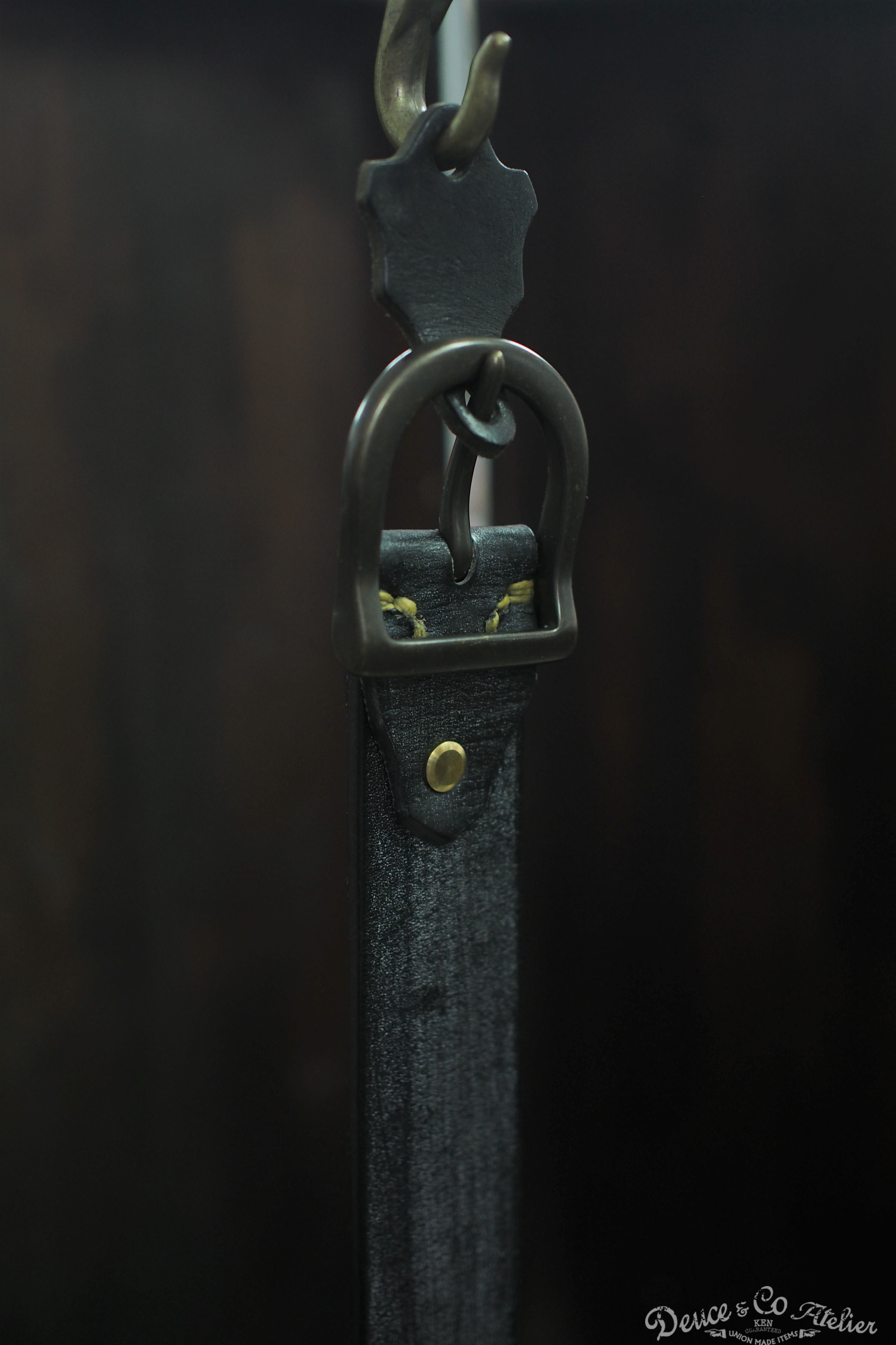 古銅色馬蹄帶扣與帶身採牛津線手縫技術, 緊密帶身
