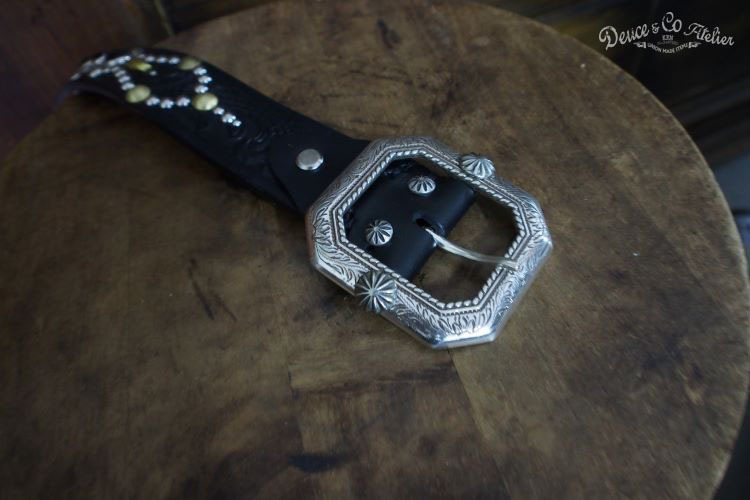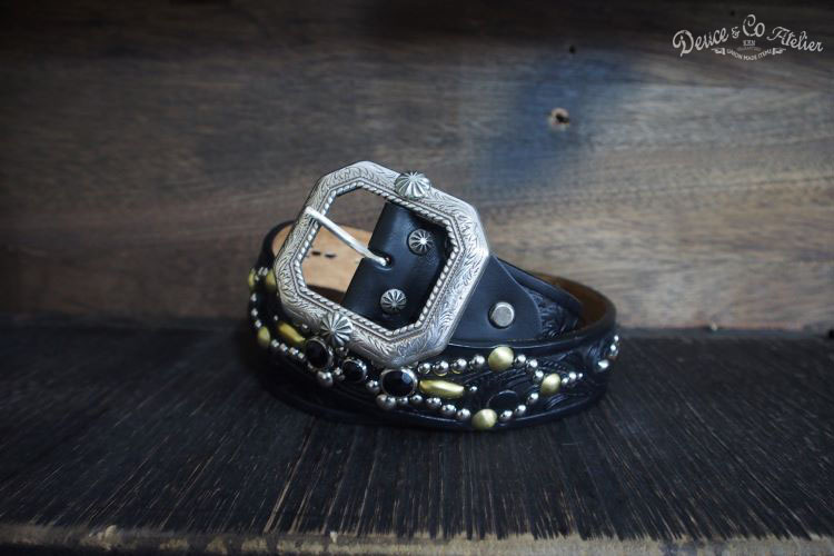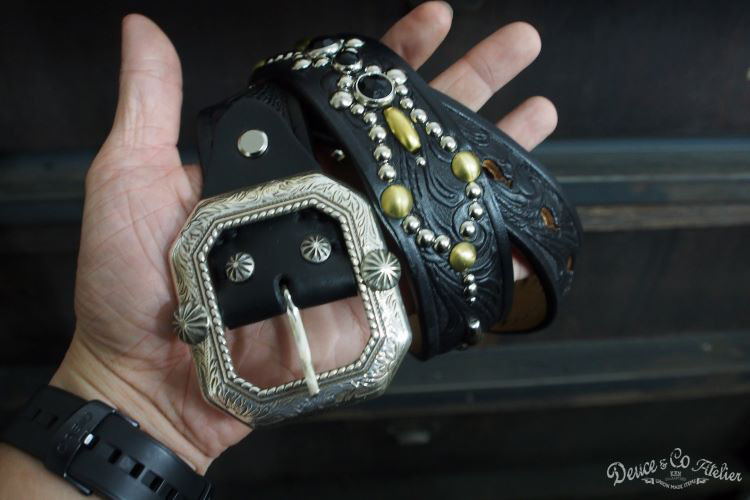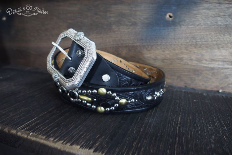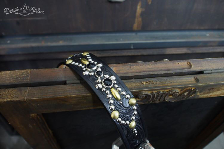 帶身上印有唐草壓花設計在配上銀銅鉚釘與彩珠, 味道十足