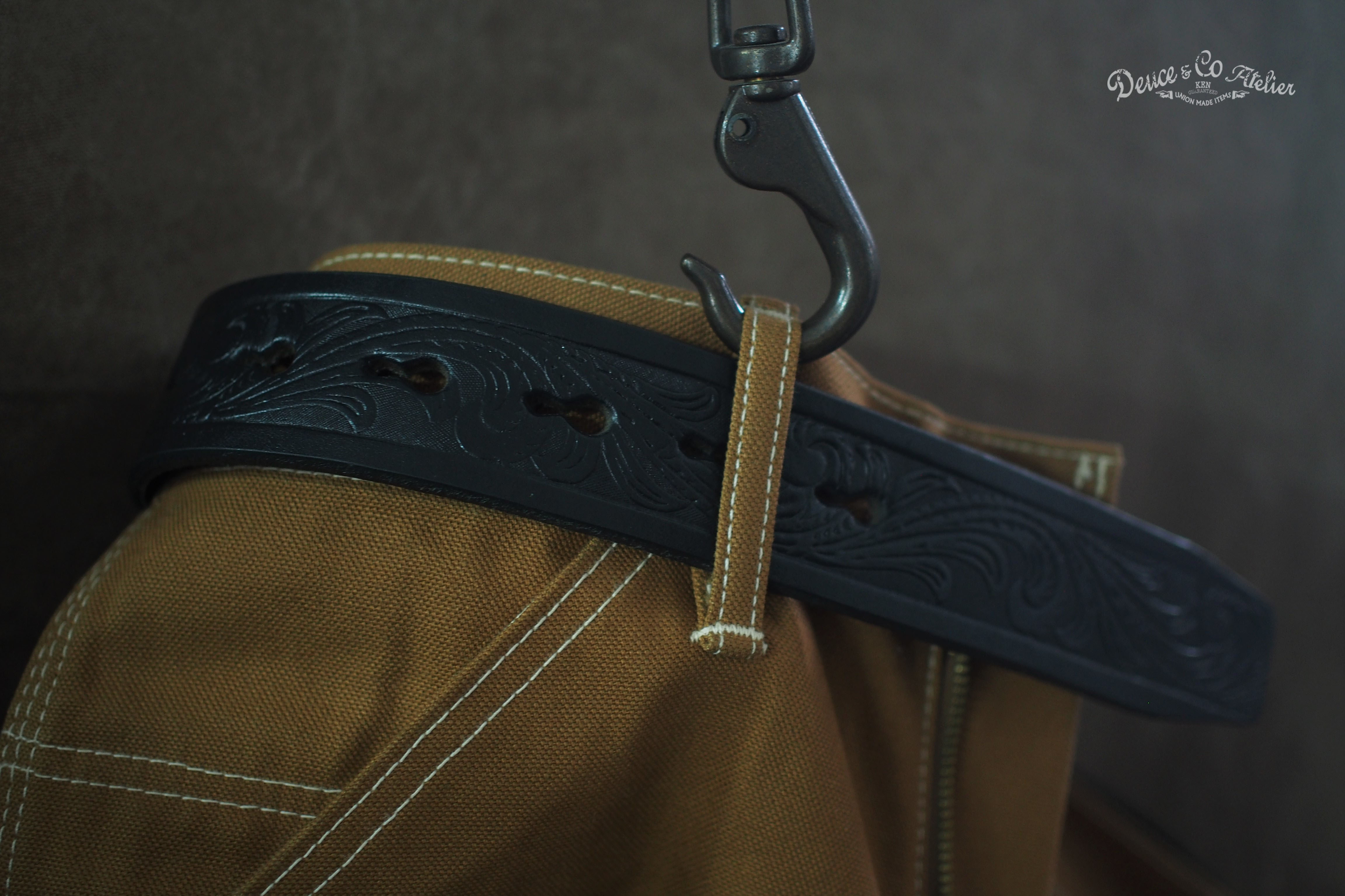 以義大利佛羅倫斯多脂植鞣透染革打造寬約38mm黑色帶身,