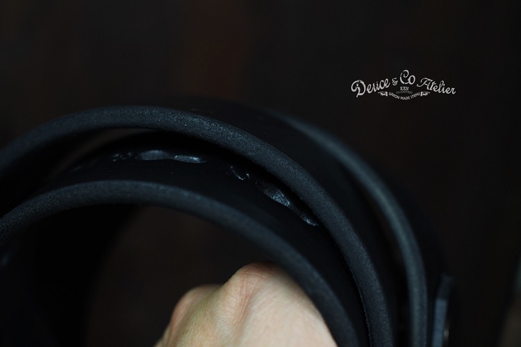 帶身以義大利佛羅倫斯多脂黑近5mm (13oz)厚革製作,
