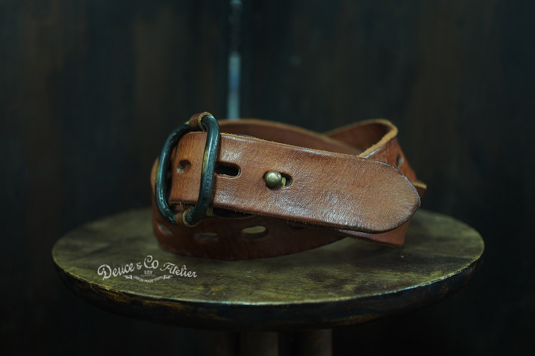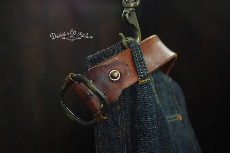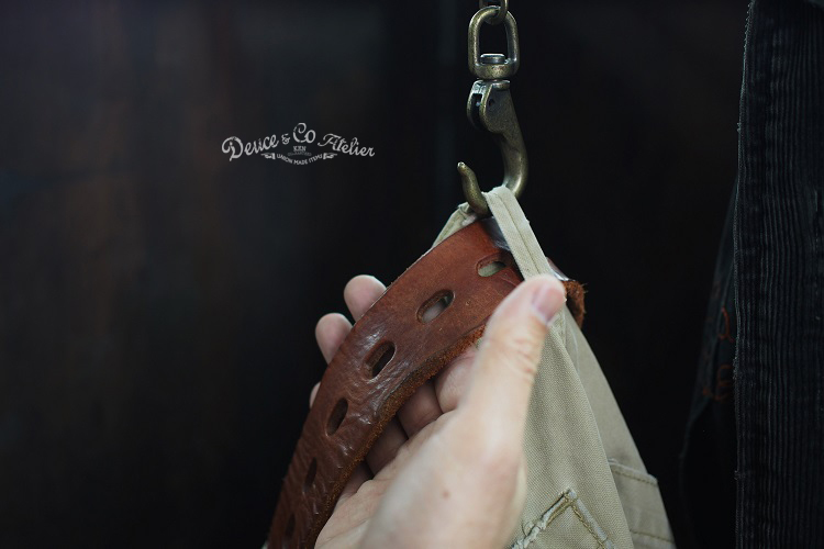 並以楔形針步牛筋線手縫與帶身結合, 增添許多復古工業韻味,