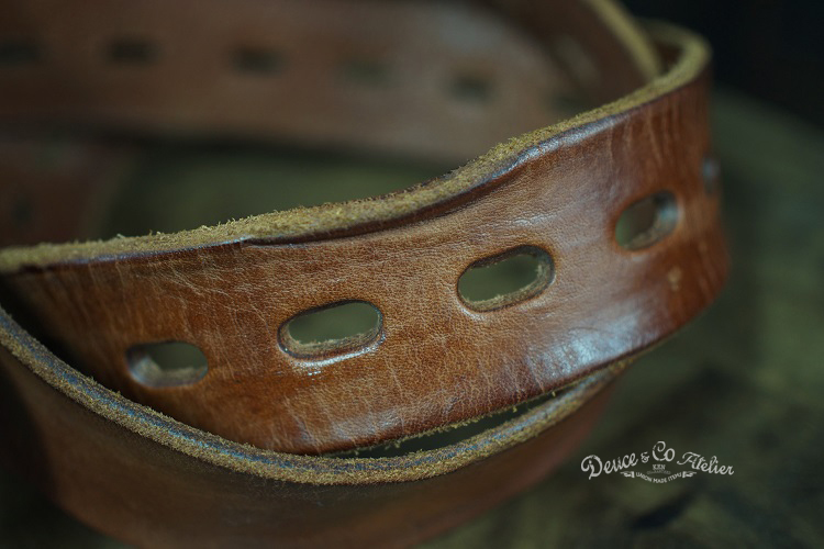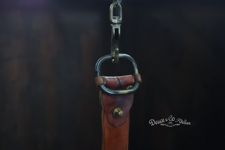 以義大利佛羅倫斯多脂植鞣革打造寬約40mm帶身,