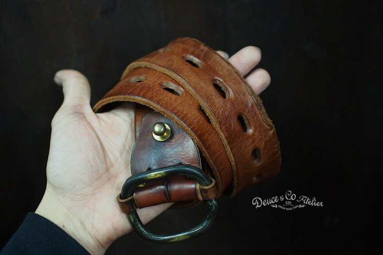 自行開發的橢圓型帶孔於整條帶身, 增添不少粗曠氛圍