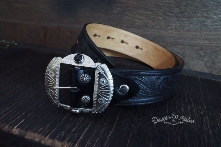 以美國西部WESTERN風格, 義大利多脂植鞣茶芯革打造寬4cm帶身,