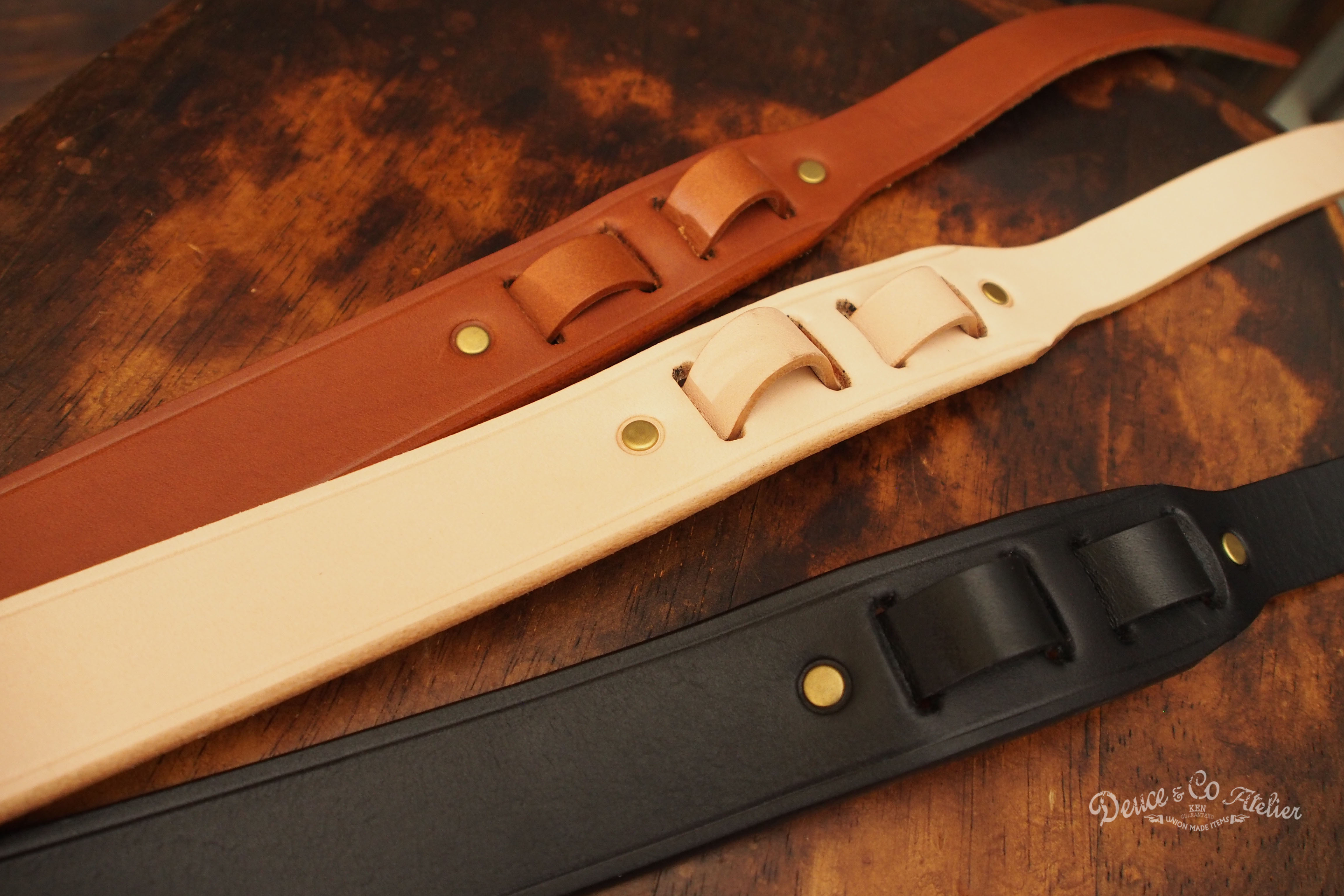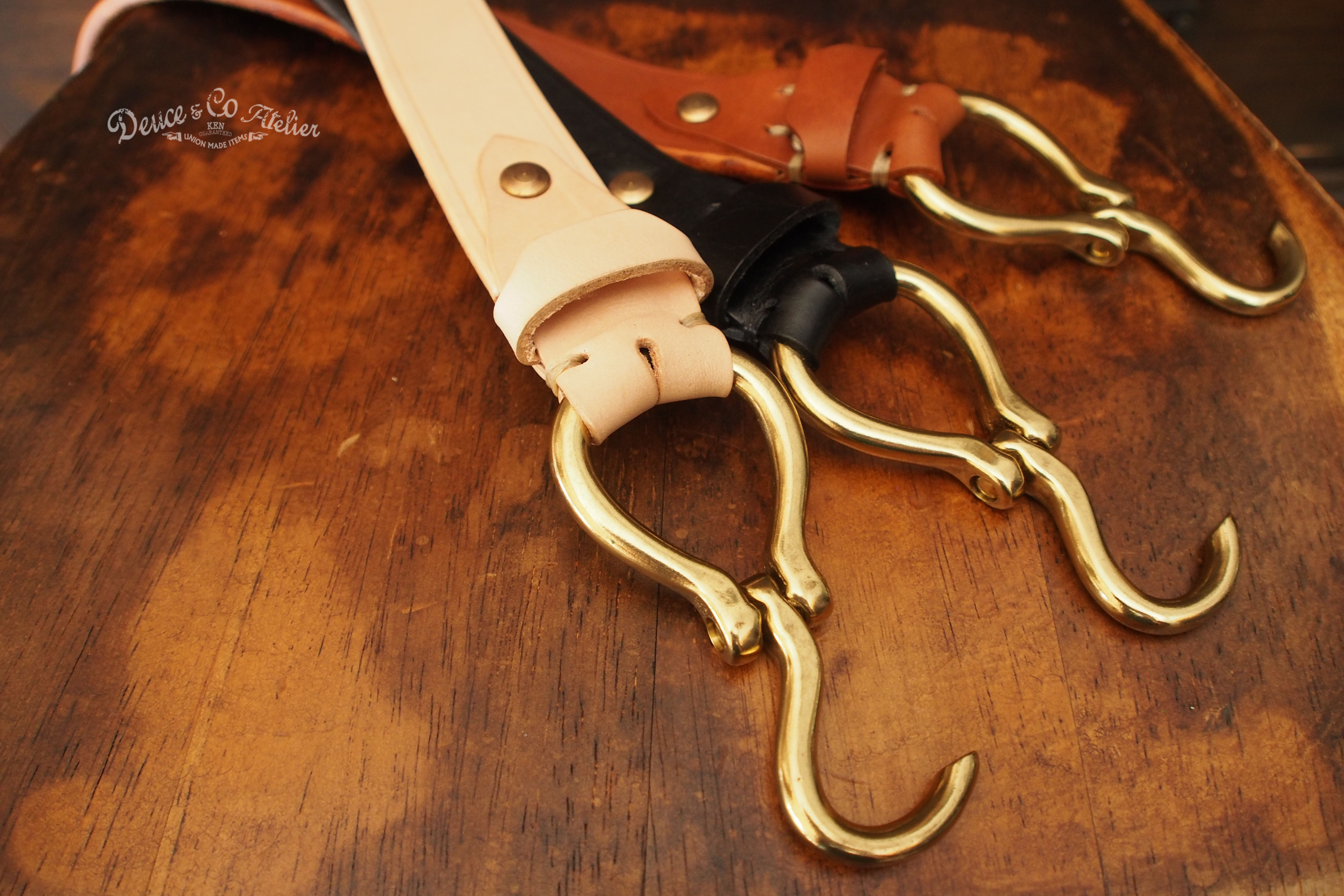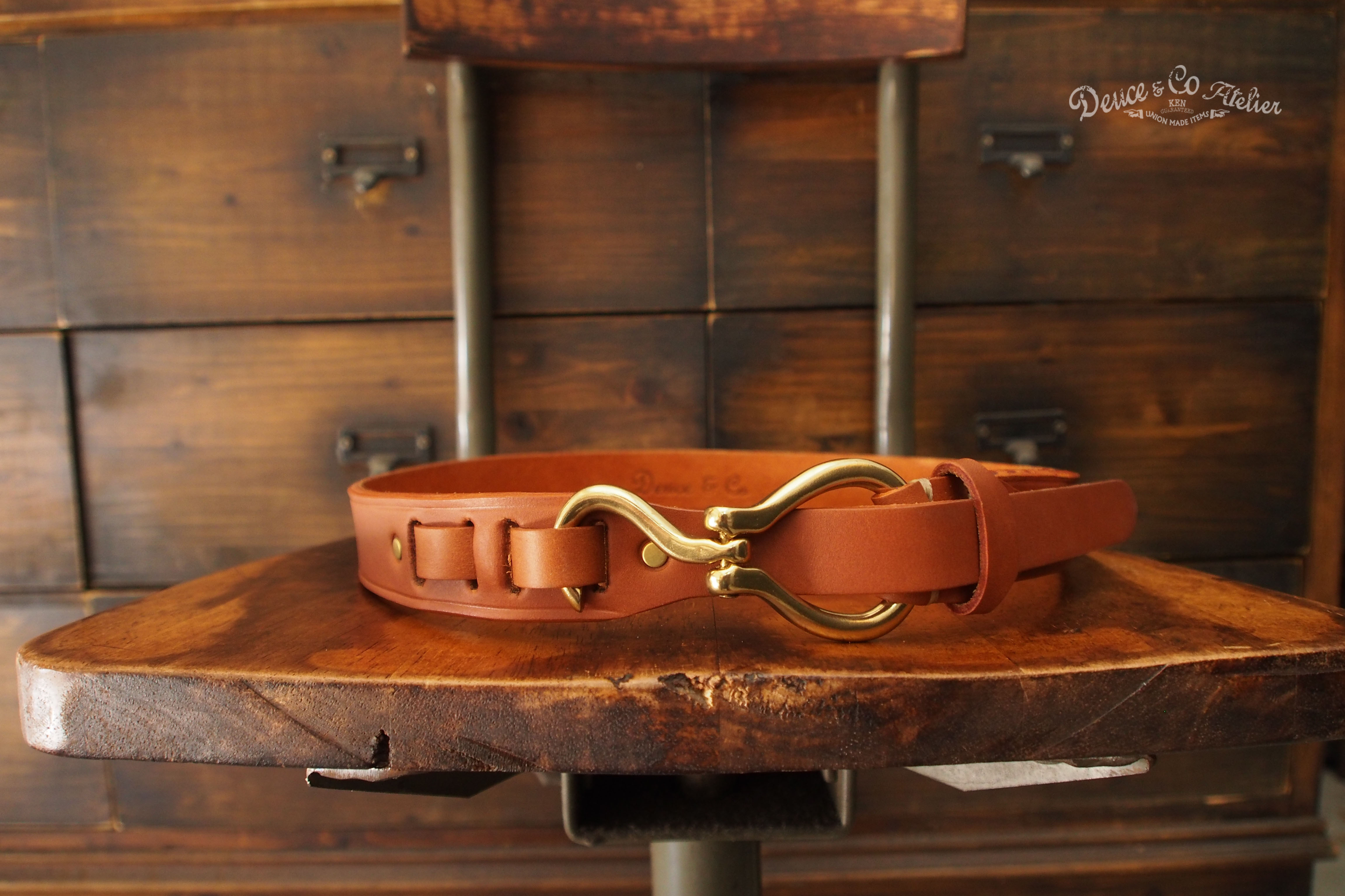 使用義大利馬鞍皮革製作3cm合宜寬度帶身, 搭配銅質水兵鉤帶扣,