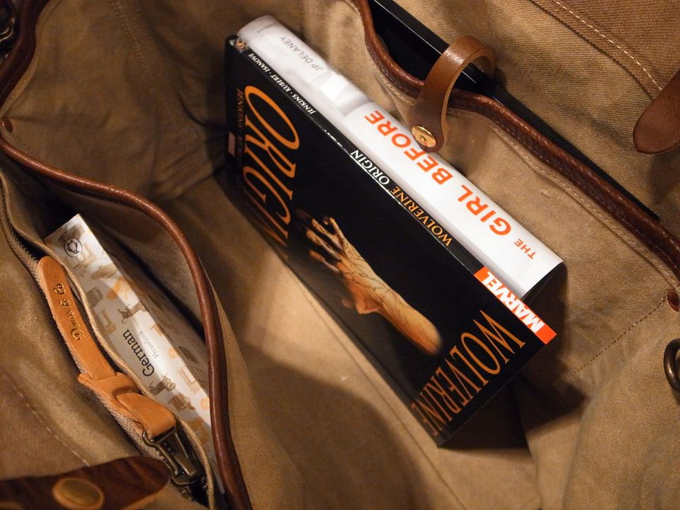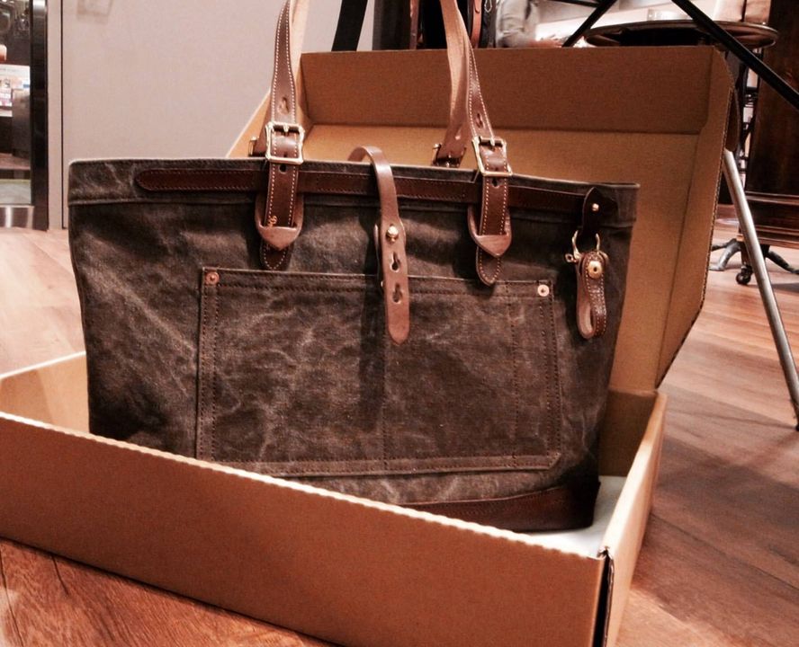包身採工業屬性的高密度重磅軍規帆布料與義大利多脂馬鞍革,