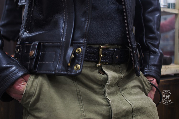 義大利加脂馬鞍格黑色, 俐落的35mm 寬度皮身設計美國警用編織籃壓紋搭配英國老式消防員銅芯帶釦,