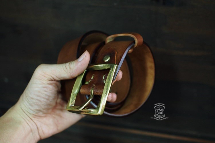 除了皮革視覺上的顯眼外, 皮帶頭使用銅芯旋轉單針帶釦