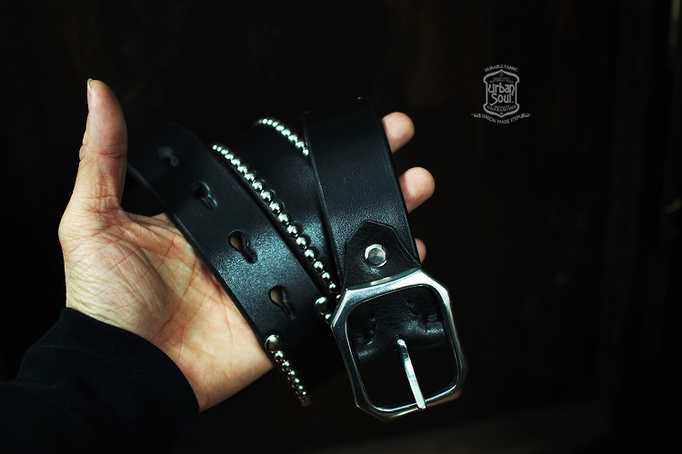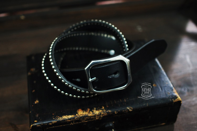 帶身配上銀色圓釘於上下兩排, 加強了皮帶硬蕊氣息,
