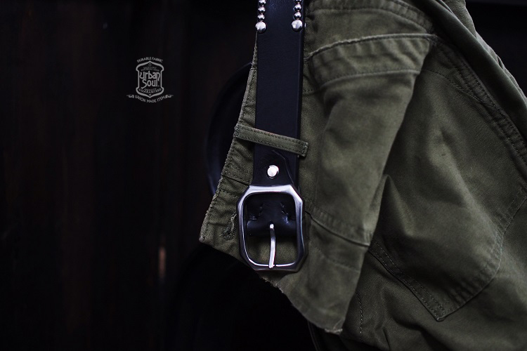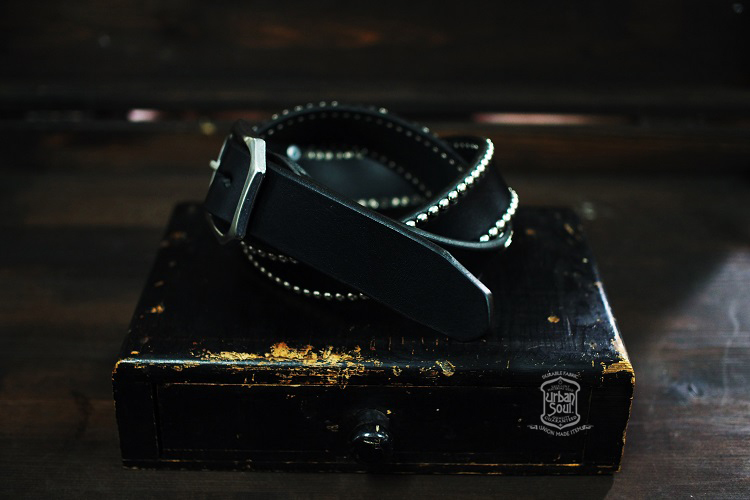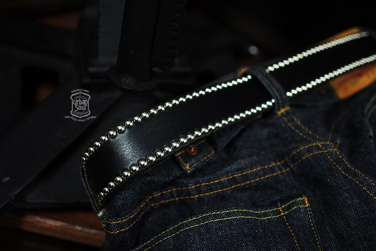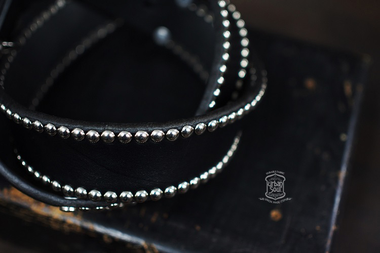 5mm厚革 (13oz), 再配上銀色圓釘於上下兩排於皮身, 加強了皮帶硬蕊氣息,